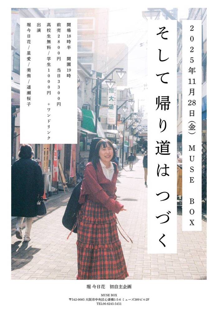 堀今日花pre.「そして帰り道はつづく」 SCHEDULE 2025/11/28(金) MUSE BOX 地図を表示 OPEN 18:30 / START 19:00 🎫¥2,800(+1D ¥600) 堀今日花/美侑/星愛/遥瀬桜子 お取り置きはこちらから!! URLをコピーする 報告する